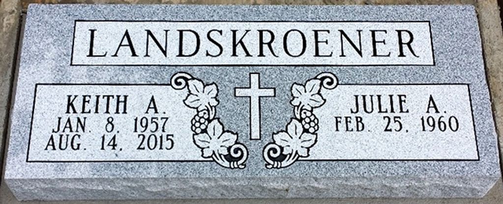 Flat markers (also known as flush markers or grass markers) are the most common memorial. They are 4" thick and can be set into the ground or on a cement foundation. Take a look at some of the companion flat markers that we have completed. Please call for pricing.