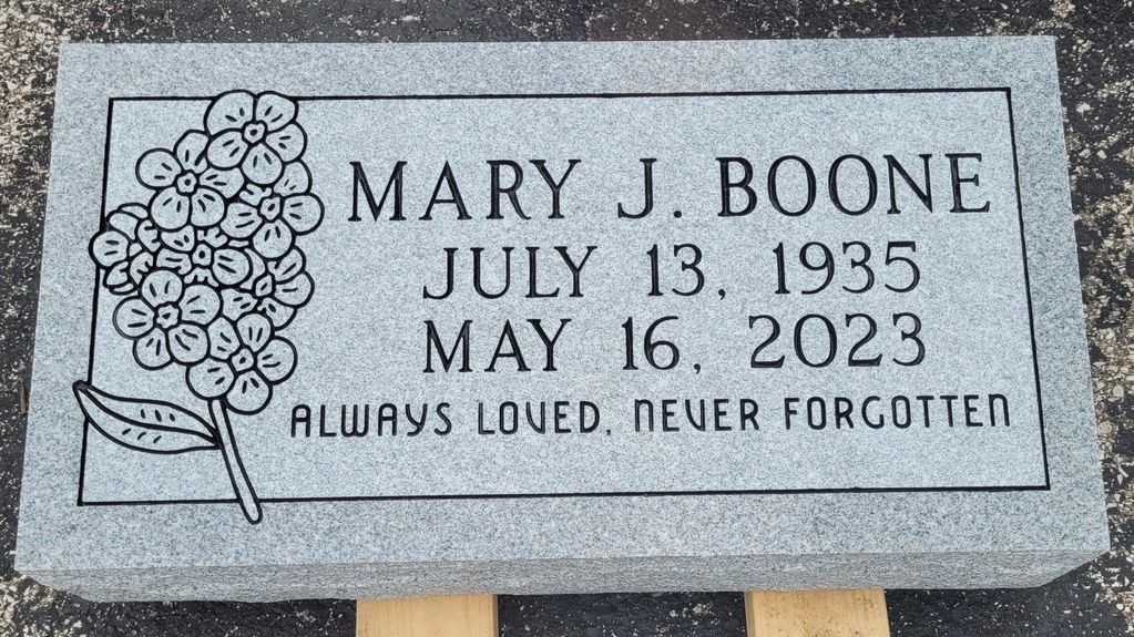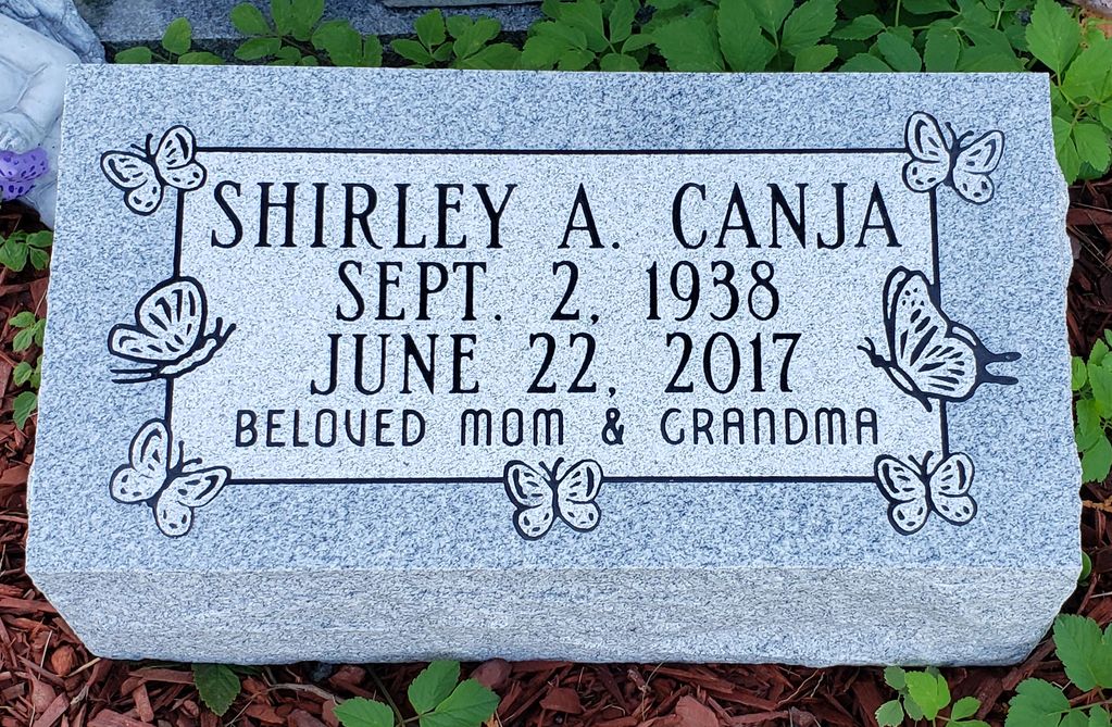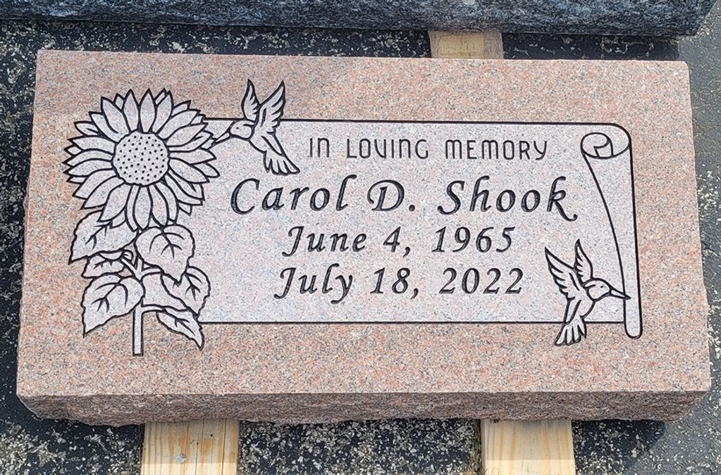 Bevel markers (also known as hickey markers or pillow markers) are designed to sit above ground. They are slanted from the back to the front to allow water to run off which allows them to stay cleaner than a flat marker. Take a look at some of the individual bevel markers that we have completed. Please call for pricing.